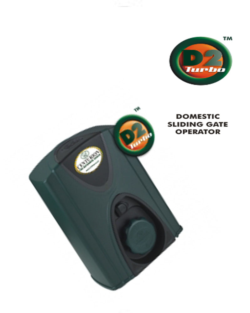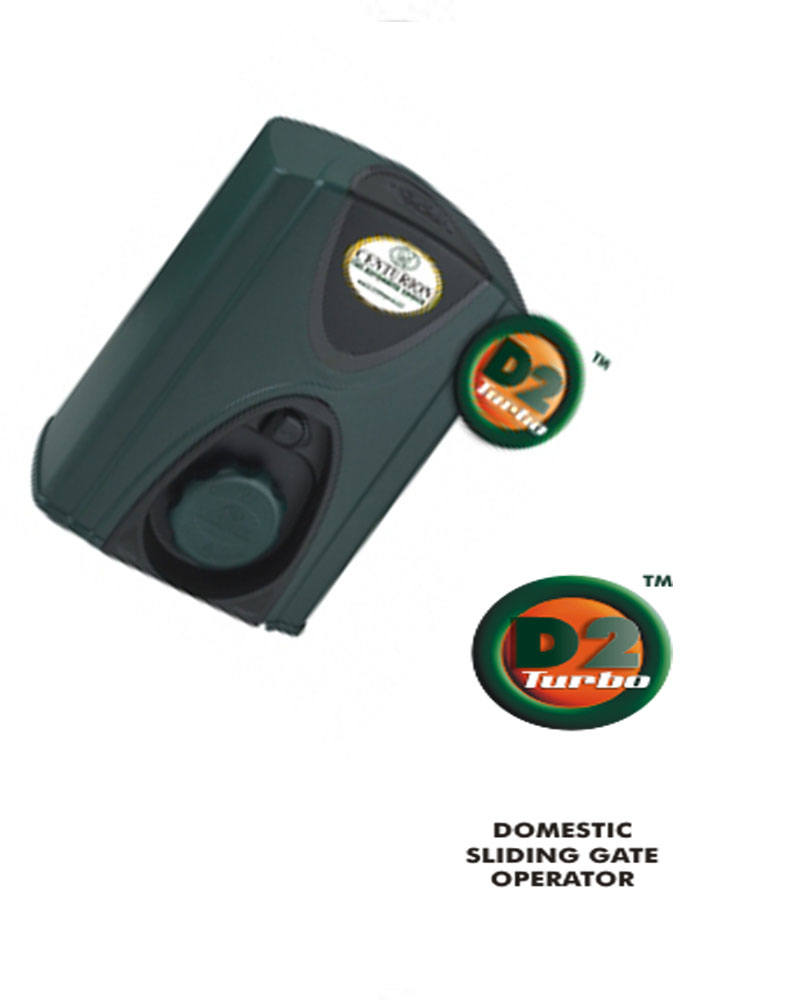 Contact Sales RepA 12V DC battery revs the CENTURION D2 Turbo domestic sliding gate motor up to 9000rpm so it will move gates weighing up to 250 kilograms at up to 24 metres per minute. Now thats fast!